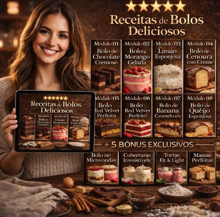 Muitas pessoas têm dificuldade com a falta de disciplina e clareza. Elas tentam ler receitas de bolo, mas ficam frustradas porque não sabem como entendê-las ou aplicá-las. Este guia visual irá orientá-lo e apoiá-lo em cada etapa da sua jornada de aprendizado na arte de fazer bolos e sobremesas.
